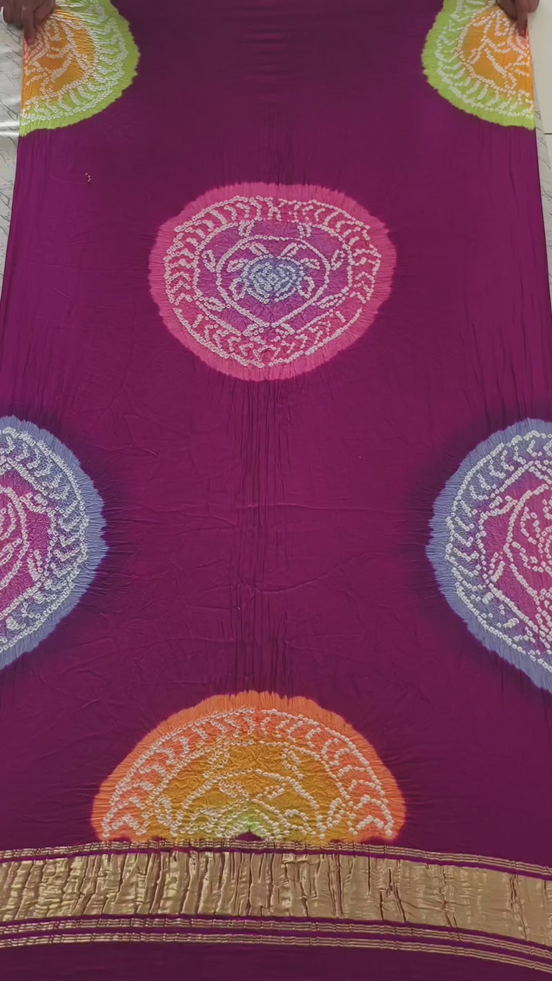 Beautiful Bandhani suit set with multi-color Bandhani dupatta and plain dye top & bottom.